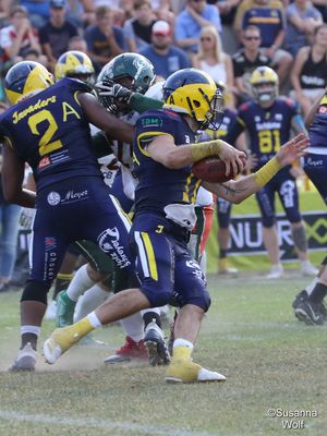 In einer schnellen ersten Halbzeit war es erneut Anthony Dablé-Wolf, der punktete. Der Franzose schaffte seinen zweiten Touchdown noch vor der Pause. Jeckstadt seinen zweiten Extrapunkt: 14:7.