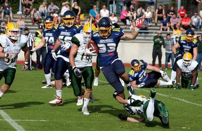 Nur drei Scores ließ die Defense der „Men In Blue“ zu. Ein Wert der deutlich zeigt, dass man ganz sicher nicht chancenlos ist. Yves Thissen: „Wir kassieren keine hohen Niederlagen, weil wir zu schlecht sind. Es gelingt uns einfach noch nicht einen guten Drive mit Punkten zu beenden. Wir machen in den entscheidenden Situationen in allen Mannschaftsteilen noch Fehler, die wir nicht machen dürfen. Das sind dann eben Strafen, die uns zu langen dritten Versuchen bringen oder Interceptions, die uns nicht den eigenen Touchdown bringen und die gute Position kosten.“