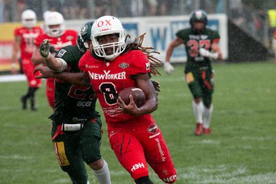 New Yorker Lions Safety Jamaal White stoppte Kiels Runningback Fritjof Richter so, dass dieser den Ball verlor und das freie Spielgerät von der Braunschweiger Verteidigung gesichert werden konnte.