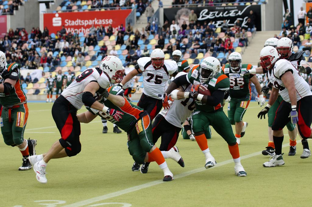 Nach der Halbzeit nahm das Spiel dann richtig Fahrt auf. Kurz nach Wiederbeginn rannte Michael Andrews wieder beeindruckend zum nächsten Touchdown in die Gladbacher Endzone. Mit dem Zusatzpunktversuch von Julian Dohrendorf waren die Canes nun mit 20:6 deutlich in Front. Dann allerdings folgte ein völliger Leistungseinbruch bei der Kieler Mannschaft und die Mavericks starteten ihre Aufholjagd. Zunächst tankte sich Gladbachs Ballträger Rodney Kinlaw zum 12:20 in die Endzone der Canes durch. Dann mussten die Fördestädter den Ball wieder schnell abgeben und nur eine Minute später schaffte Passempfänger Olaf Fries das 18:20. Der abschließende Zusatzpunktversuch der Mavericks durch Tightend Florian Pawlik brachte den 20:20 Ausgleich und damit war das Spiel nun wieder völlig offen und die Zuschauer riss es regelrecht von ihren Sitzen. Lautstark wurden nun beide Teams angefeuert.