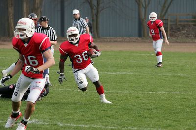 Diese wurden durch die Touchdowns von Ryan Voss und Christian Bollmann sowie das Field Goal von Tobias Goebel mit dem letzten Spielzug vor der Halbzeit auch entsprechend genutzt.