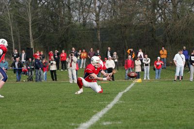 Diese nutzten vor allem die drei neuen Kicker im Team, die sich die Aufgaben bei den Kick-Offs und Extrapunkten teilten. Dabei gab es sowohl Licht als auch Schatten, und der Höhepunkt in dieser Hinsicht war sicherlich das sicher verwandelte Field Goal aus 36 Yards Entfernung von Tobias Goebel kurz vor der Halbzeit.