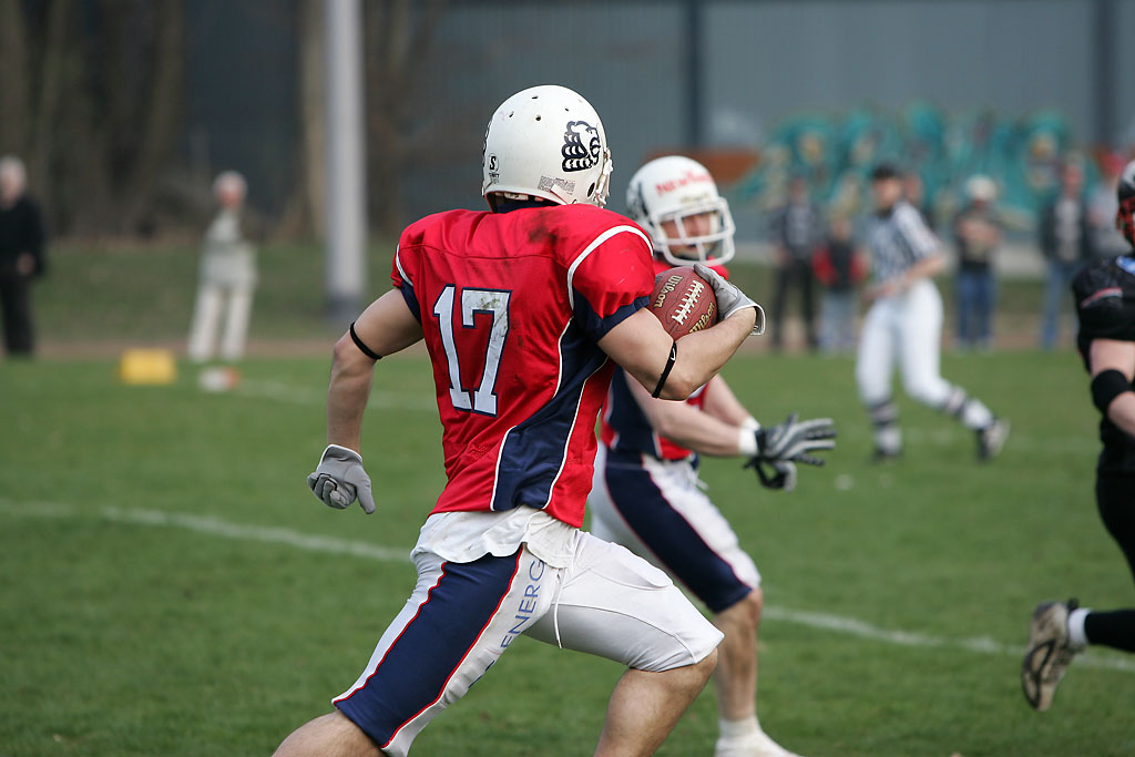 Neben einer sich schon in guter Frühform befindlichen Verteidigung überzeugte auf Seiten des amtierenden Deutschen Meisters auch Quarterback Dennis Zimmermann, der fünf Touchdownpässe anbringen konnte.