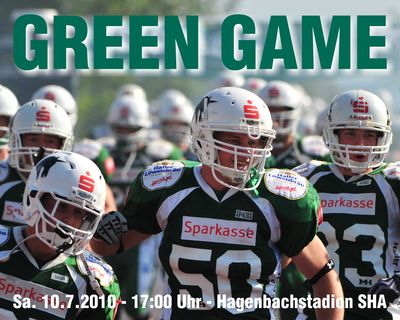 Das Spiel gegen München ist bei den Unicorns das Green Game der Saison 2010. Bei diesem Spiel bemühen sich die TSG-Footballer immer mit verschiedenen Aktionen um ein besonders grünes Hagenbachstadion. So warten sie auch am Samstag wieder mit besonderen Angeboten auf.