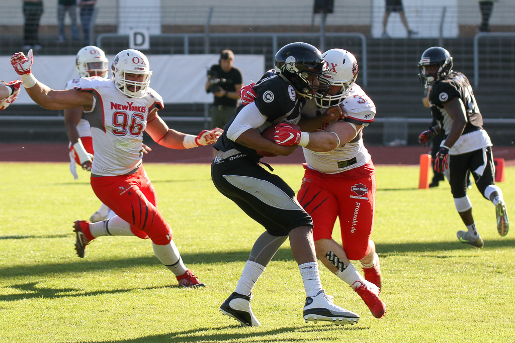 Zwar versuchten die Hausherren alles, um noch einmal heranzukommen, doch auch ein ausgespielter vierter Versuch kurz vor der Mittellinie brachte nicht den erwünschten Erfolg und wurde durch einen Quarterback- Sack von Samuel Kargel vereitelt.