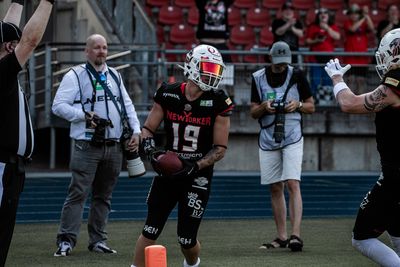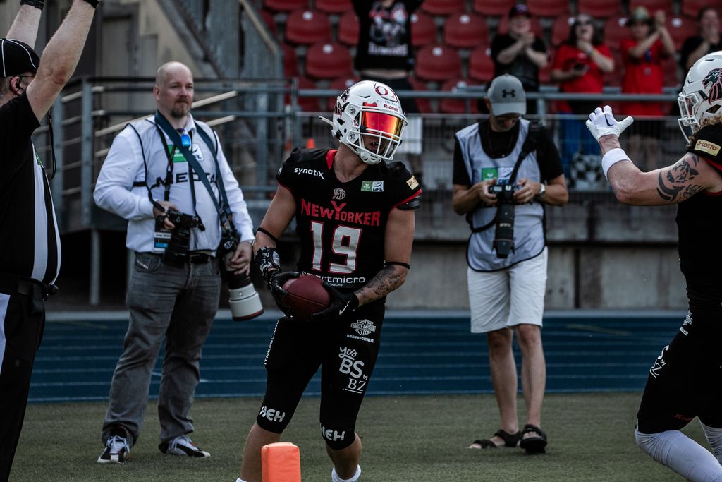 Nicht nur dass die Löwen die Gäste in den vierten Versuch zwangen, nein, Passverteidiger Maximilian Wessel war zur richtigen Zeit am richtigen Ort, schnappte sich den Passversuch des Kieler Spielmachers Nate Hayden in der eigenen Endzone und trug den Ball bis fast an die Mittellinie zurück.
