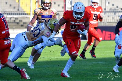 Sah man zu Halbzeitbeginn im Team der New Yorker Lions einige geknickte und mit sich hadernde Spieler, schafften es die Coaches und die erfahrenen Spieler in der Pause, die Mannschaft nochmal neu zu motivieren und aufzubauen.
