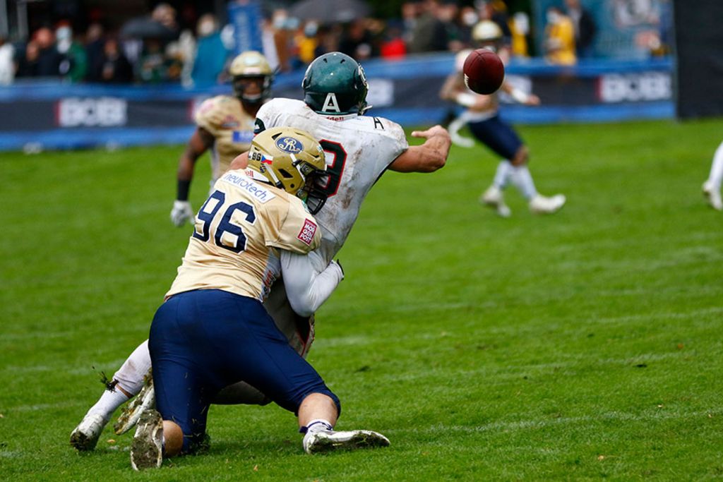 Vor 475 Zuschauern auf der verregneten Moorteichwiese wehrten sich die Canes zwar gegen den Tabellenführer, dennoch führten die Monarchs zur Halbzeit bereits mit 28:7 und es sollte nicht erneut ein Schlagabtausch wie im Hinspiel Anfang August in Dresden werden. Doch die Hurricanes kämpften bis zur letzten Sekunde, um sich mit einigen Scores von ihrem Heimpublikum für 2021 zu verabschieden. Nach Touchdowns von Arvid Lippels und Joe Germinerio sorgte Quarterback Henrik Wolk mit einem Pass auf Tom Donovan für die letzten Punkte des Jahres.