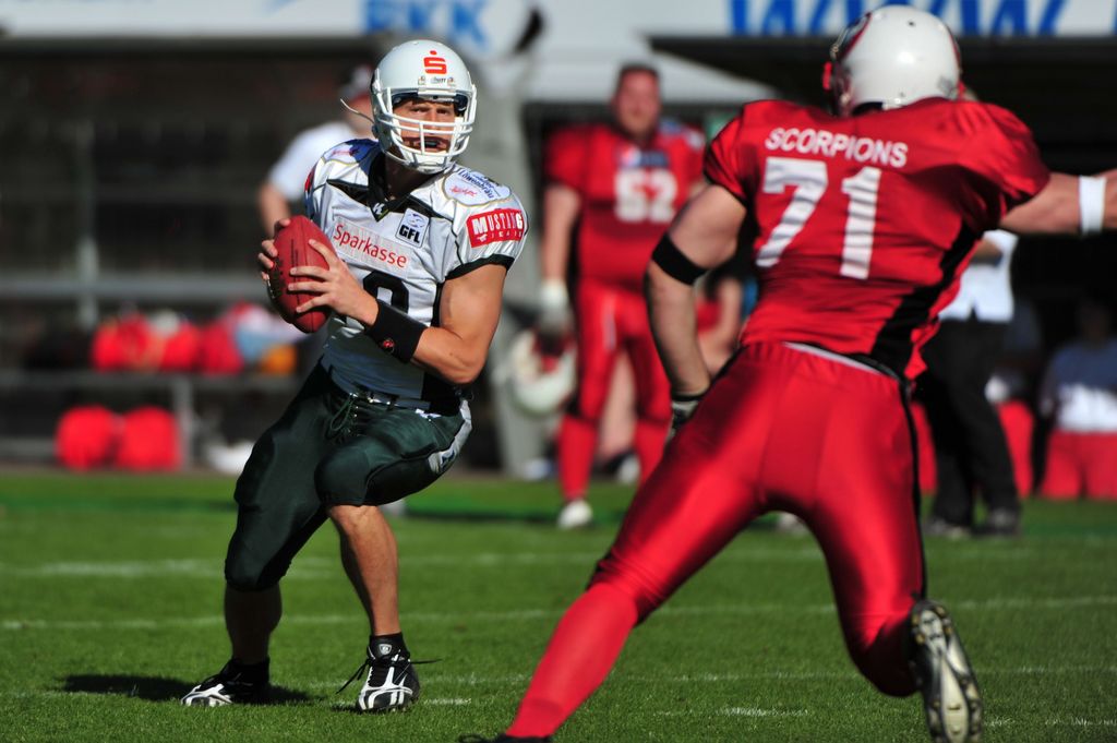 Auf ihre Kosten kamen in diesem Württemberg-Derby in der German Football League auch die Freunde von Defense-dominierten Spielen. Die Haller Verteidiger zeigten eine Glanzleistung, bescherten den Scorpions viel Raumverlust und sorgten dafür, dass etliche Pässe nicht ankamen. Stuttgarts Defense hielt die Angriffsbemühungen ihres Gegners ähnlich erfolgreich auf. So kamen die Unicorns beispielsweise nicht vor Mitte des zweiten Viertels in die Red Zone der Landeshauptstädter.