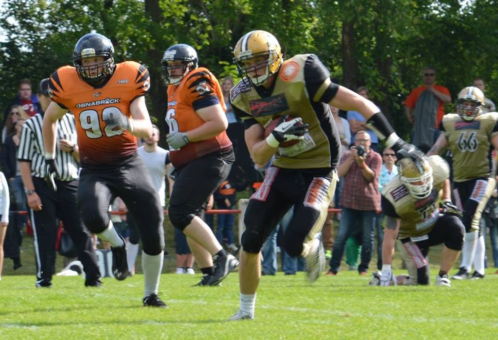 Mit dieser Auswärtspleite kassierte das Herrenteam ihre bis dato höchste Niederlage in der Vereinsgeschichte. Das hochgesteckte Ziel, zwei Punkte aus Osnabrück zu entführen, rückte nach dem ersten Quarter schnell in weite Ferne. Bereits nach den ersten zwölf Minuten stand es 32:0 für den Gastgeber. Vor allem das Laufspiel der Tigers dominierte in der ersten Hälfte. Individuelle Fehler in den eigenen Abwehrreihen erlaubten den Tigers zu viele Freiräume, welche auch gnadenlos ausgenutzt wurden. Mit elf weiteren Punkten im zweiten Quarter trennte man sich in die Pause mit einer deutlichen Halbzeitführung von 43:0 für die Niedersachsen.