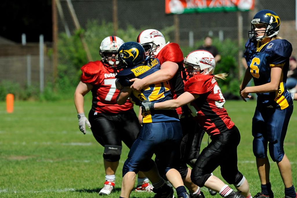 Den Gästen gelang früh mit einem Lauf in die Endzone der Amazons der erste Score auf dem Punkteboard. Aber das die Amazons nicht willens waren den Kobras kampflos freien Weg in Ihre Endzone zu gestatten, das machte die Defense der Hamburger klar. Verhindern konnte man jedoch auch den zweiten Touchdown der Berliner nicht. Ein Punt return Touchdown seitens der Berliner führte zum 0:12.