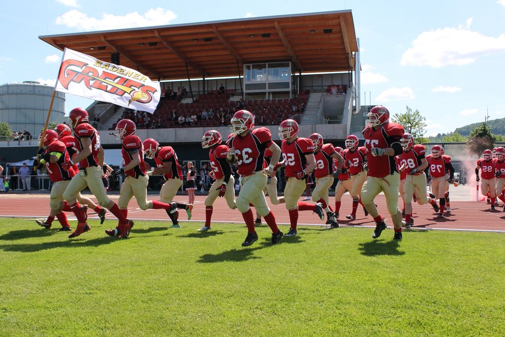 Dann gelang unserem Quarterback #1 Den Lindenblatt ein sehenswerter Fake, welcher der Defence der Stuttgarter zuerst einen Laufspielzug suggerierte, dann aber in dem spielentscheidenden langen Pass endete. Diesen konnte #82 Thomas Kirchner fangen für 50 Yards und zum Touchdown tragen. Trotz nicht erfolgreicher Two Point Conversion konnten die Badener Greifs erneut mit 33:27 in Führung gehen.