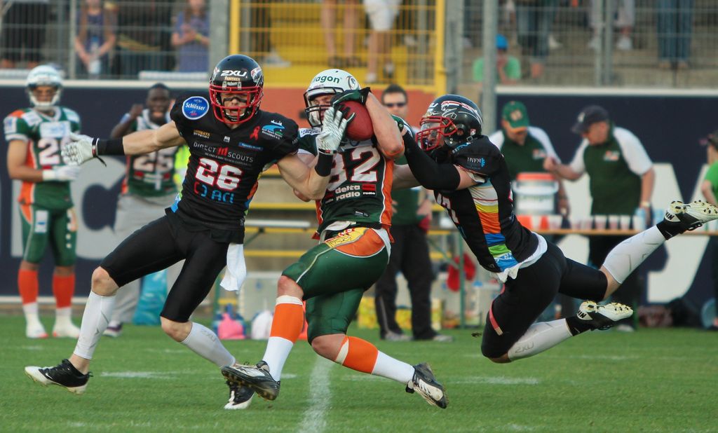 Zwei der von Hanselmann angesprochenen Nuancen hatten mit der personellen Situation der Gastgeber zu tun. Ohne Steve Coles, der nach seinem Muskelfaserriss im Oberschenkel aus dem Auftaktspiel immer noch nicht wieder einsatzfähig war, fehlte dem Düsseldorfer Laufspiel ein wenig von der nötigen Durchschlagskraft. Dadurch konnte sich die Kieler Deckung, die von Hurricanes-Headcoach Patrick Esume („wir wussten, dass wir es mit einem extrem gefährlichen Gegner zu tun haben“) bestens vorbereitet worden war, darauf konzentrieren, das Düsseldorfer Passspiel zu unterbinden.