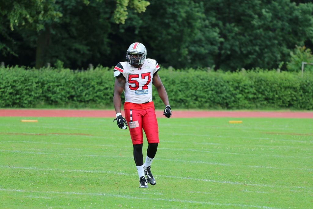 Er soll gemeinsam mit seinen Defensiv-Kollegen die gegnerischen Angriffswellen möglichst schnell stoppen. Eine kräftige Statur, ohne dabei zu behäbig zu werden, ist Grundvoraussetzung für die Position des Linebackers, der hinter der ersten Abwehrreihe Stellung bezieht. Passenderweise ist der Hamburger Laporte, der in den USA in Newark (US-Bundesstaat New Jersey) geboren wurde, Fitnesstrainer und gleichzeitig Geschäftsführer eines Studios in der Hansestadt.