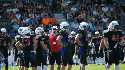 Die American Footballer des TSB Ravensburg setzen ihre Serien in dieser Saison konsequent fort. Der achte Sieg im achten Spiel und erneut ausverkaufte Ränge in der neuen Heimspielstätte in Weingarten. Mit 1.020 Zuschauern wurde sogar der Besucherrekord vom Premierenspiel im April geknackt. Das Spiel begann mit ein paar Minuten Verzögerung. Grund hierfür war der spektakuläre Auftritt der Fallschirmspringer aus Bad Saulgau. Diese brachten den Spielball aus mehreren Tausend Metern Flughöhe ins Stadion. Die Euphorie dieser Aktion steckte die Heimmannschaft an. Und so lief der Kanadier Stephen Spagnuolo bereits im zweiten Spielzug mit dem Ball in die Endzone. Da der Point-after-Touchdown (PAT) geblockt wurde, stand es 6:0. Montabaur hatte noch nicht richtig ins Spiel gefunden, da setze es schon die nächsten Punkte. Wide-Receiver und Top-Scorer Michael Mayer fing einen kurzen Pass in der Endzone. 13:0 für die Razorbacks. Nur Minuten später konnte Passverteidiger Rolf Kienzle einen Pass der Fighting Farmers abfangen und das Angriffsrecht wechselte. Joris Strobel und Kicker Frank Straub erhöhten auf 20:0. Kurz vor der Halbzeit lief Kevin Kienzle zum 26:0 und Montabaur fand nun deutlich besser ins Spiel. Durch einen langen Touchdown-Pass stand es 20:7 nach dem zweiten Viertel. Die zweite Spielhälfte war ausgeglichen und beide Mannschaften lieferten sich ein sehenswertes Spiel auf sehr hohem Niveau. Montabaur konnte erneut zwei Pässe erfolgreich in die Endzone tragen, bevor Michael Mayer auf 33:20 erhöhte. Im letzten Viertel wurde es dann filmreif. Eine spektakuläre Szene jagte die nächste. Die Gäste punkteten zwei weitere Male und glichen zum 33:33 aus. Minuten vor dem Schlusspfiff gelang Spagnuolo das 39:33, doch der PAT blieb erfolglos. Somit hatte Montabaur die Chance mit einem Touchdown inklusive PAT den Auswärtssieg einzufahren. Doch Ravensburgs Abwehrspieler Alfeo Kopp riss den gegnerischen Quarterback im vierten Versuch auf offenem Feld extrem hart zu Boden. Das Angriffsrecht wechselte und Ravensburgs Spielmacher Garret Colao, dessen Eltern aus den USA zu Gast im Stadion waren, erhöhte zum 45:33 Endstand.