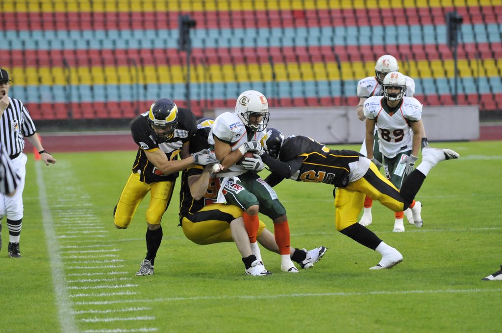 Die Adler starteten konzentriert ins Match und ließ den angreifenden Hurricanes in den ersten drei Spielvierteln keine Chance. Weder das Laufspiel um Runningback Sascha Gerassimov, noch das Passspiel von Adrian Rainbow brachte nennenswerte Ergebnisse. Aber auch die Adler taten sich sichtlich schwer gegen die starke Verteidigung der Kieler. Adler Spielmacher Brett Hall erwischte einen schlechten Tag und warf drei Interceptions. Zwei davon direkt in die Arme von Canes Linebacker Robert Koster.
