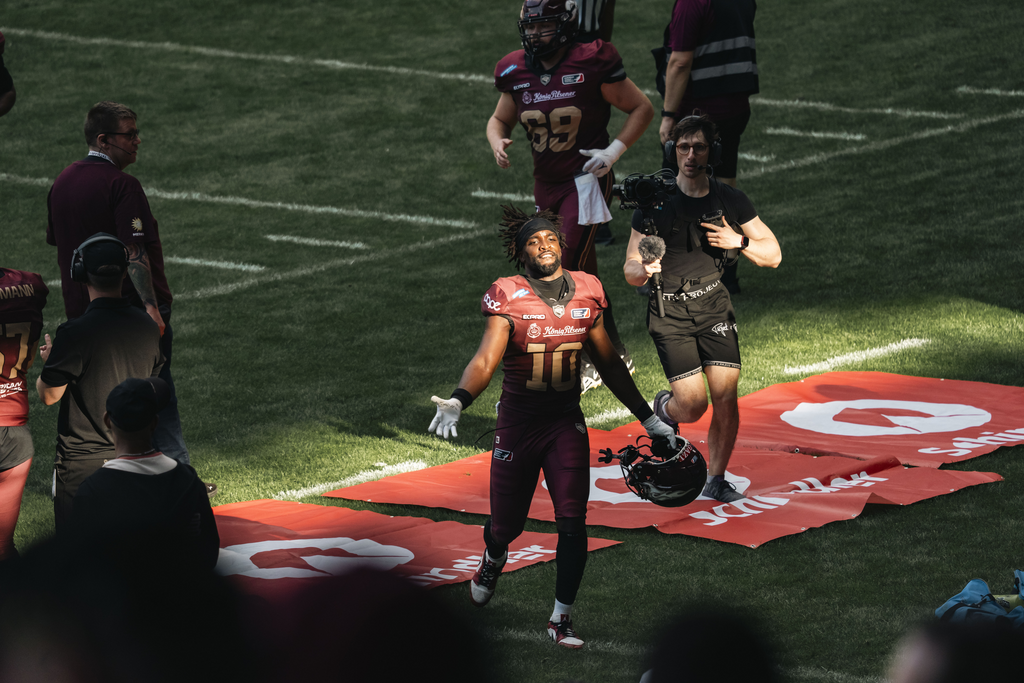 Zehn Touchdowns in den letzten drei Spielen – Harlan Kwofie macht am Ende den Unterschied für die Offense von Rhein Fire. Der umjubelte Receiver richtete den Fokus aber sofort auf die kommende Aufgabe: „Ein guter Tag. Wir haben heute unsere Arbeit gemacht. Jetzt geht es weiter – wir müssen in den kommenden Tagen Gas geben, damit das gegen Nordic Storm genauso aussieht.“