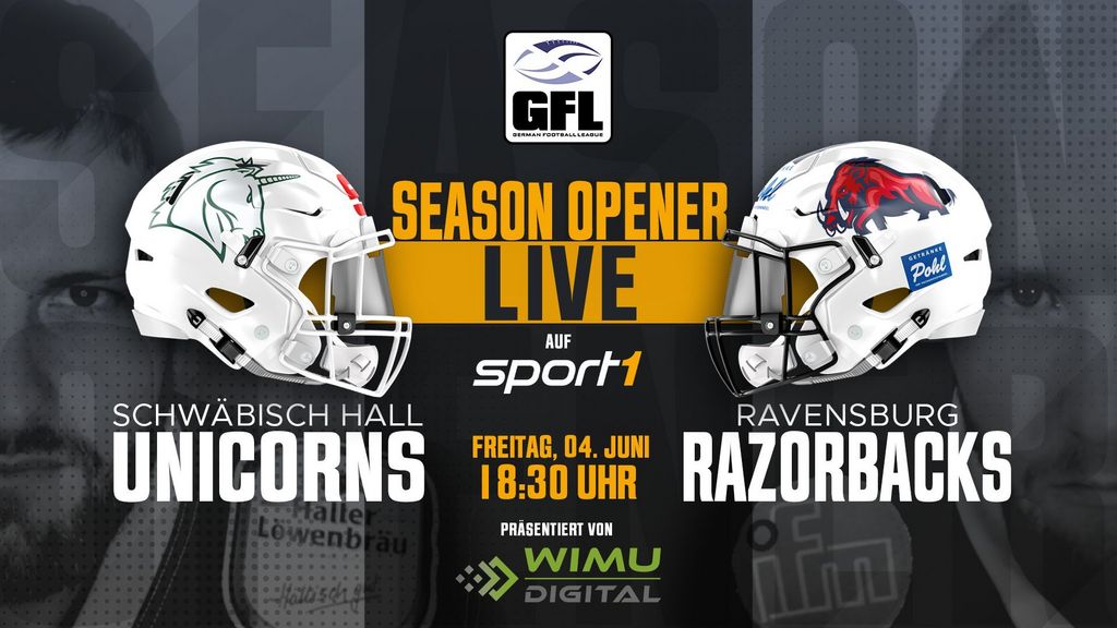 „Wir haben von Sport1 zwei Freitag-Abend-Termine und damit Sendeplätze zur besten Zeit live im Free-TV angeboten bekommen“, weiß Jörg Dressler, der im GFL-Ligavorstand für den Spielplan verantwortlich ist. „Die Herausforderung war, dafür bezüglich Stadion und Reisezeiten passende Spielpaarungen zu finden. Umso mehr hat uns die frühzeitige Bereitschaft der Razorbacks und der Unicorns gefreut, für den Saisonauftakt alles zu geben. Nun dürfen wir uns auf einen spannenden Saisonstart der GFL zur Primetime im Free TV freuen!“ Ab 18:30 Uhr überträgt Sport1 am 4. Juni aus dem OPTIMA Sportpark und um 18:45 Uhr wird der Kickoff erfolgen.