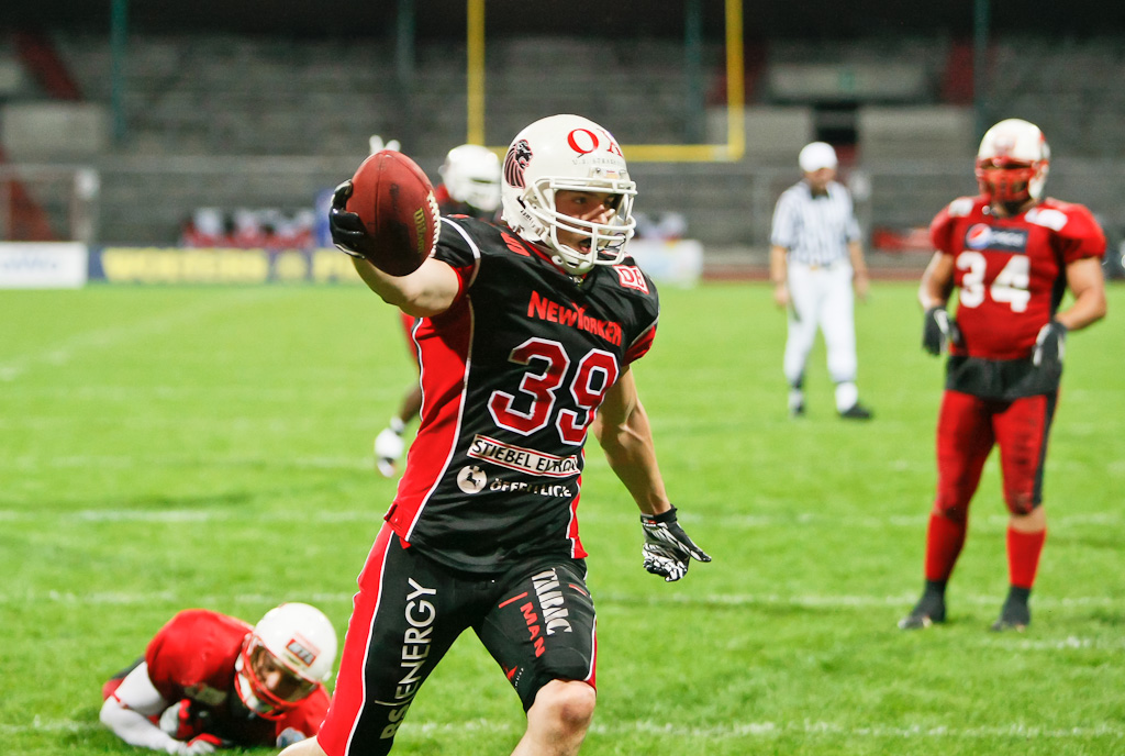 Doch die New Yorker Lions antworteten postwendend. Erst trug J. Henderson den Kick-Off der Stuttgarter bis tief in das Territorium der Stuttgarter zurück und dann war es ein Trickspielzug mit einem 45 Yard Pass von Austin Scott auf Christian Bollmann, der zur direkten Zurückeroberung der Führung zum 14:10 (PAT T. Göbel) für die Löwen führte. Diese Führung sollten die Lions auch bis zum Ende des Spiels nicht mehr abgeben. Die Verteidigung der Löwenstädter ließ dem Angriff der Scorpions keinen Spielraum mehr und zwang diese schnell dazu sich vom Angriffsrecht zu trennen. Anders der Angriff der Lions, sowohl Jabari Johnson, als auch Austin Scott liefen der Verteidigung der Stuttgarter nun reihenweise auf und davon und erzielten Yard um Yard Raumgewinn. Vollenden durfte den Angriffsdrive letztendlich Austin Scott, der sich aus einem Yard Entfernung in die Endzone der Stuttgart Scorpions tankte und die Führung für die Braunschweiger auf 21:10 (PAT T. Göbel) ausbaute.