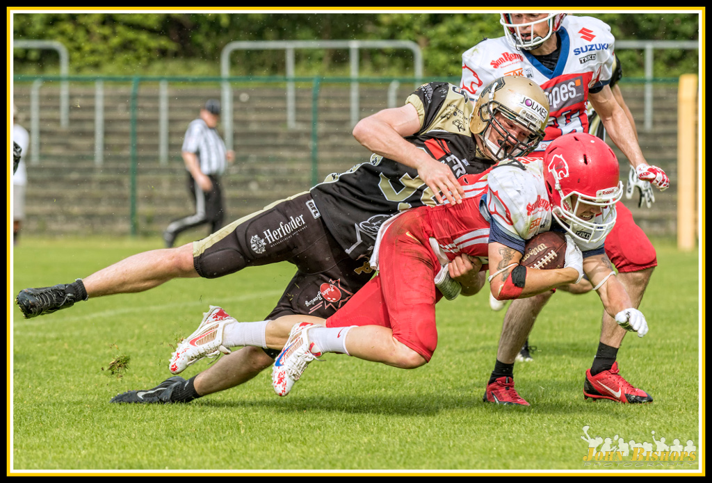 „Die Lübecker haben unser Passspiel gut verteidigt und mit dem Laufspiel sind wir viel zu spät richtig durchgekommen", so Weber. Am Ende war die Dolphins Defensive das entscheidende Zünglein an der Waage. „Wir sind immer besser ins Spiel gekommen und haben immer mehr Selbstvertrauen getankt. Mit jedem Spielzug, den wir vereiteln konnten, haben wir noch einmal zugelegt", so Weber. Durch die voranschreitende Zeit und sicherlich zunehmende Erschöpfung auf beiden Seiten schlichen sich gerade zum Ende hin immer weitere Fehler ein. Die Schiedsrichter mussten oft in die Tasche greifen und die ‚Flagge werfen‘. Mal ging es gegen die Dolphins, mal gegen die Cougars.