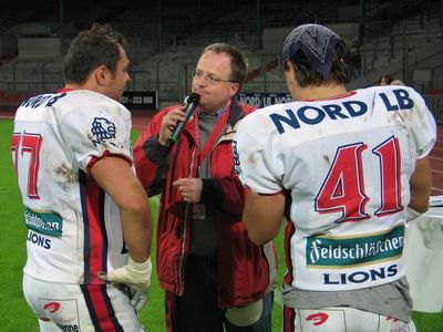 Neben den Lions-Partien war er auch Stadionsprecher bei zehn German Bowl-Endspielen zwischen 1995 und 2006.
