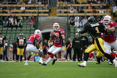 Und einige Zeit sah es so aus, als ob das die Braunschweiger sein könnten. Angeführt von Kelvin Love spielten sich die Lions vor allem über das Laufspiel mit dem starken Michael Andrew Meter um Meter an die Endzone der Berliner heran.
