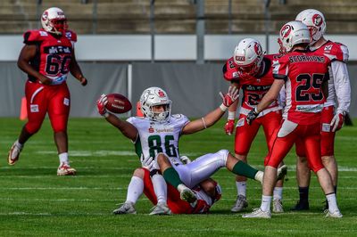 Nate Robitaille mit seinem dritten Touchdown an diesem Tag und Samuel Shannon schraubten das Ergebnis vor dem letzten Seitenwechsel auf 49:21 hoch und auf Haller Seite kamen mehr und mehr Backups zum Einsatz. So sorgten Touchdowns von Andre Feuerherdt und Brandon Kohn im letzten Viertel für den 63:21-Endstand.