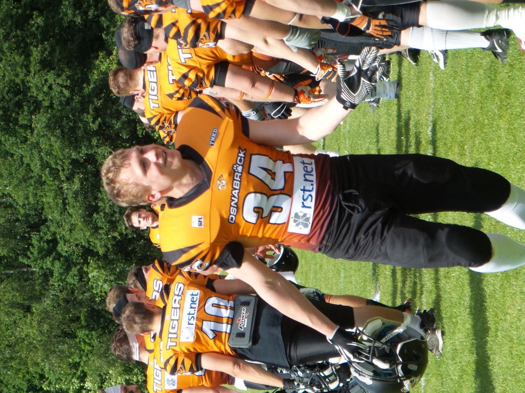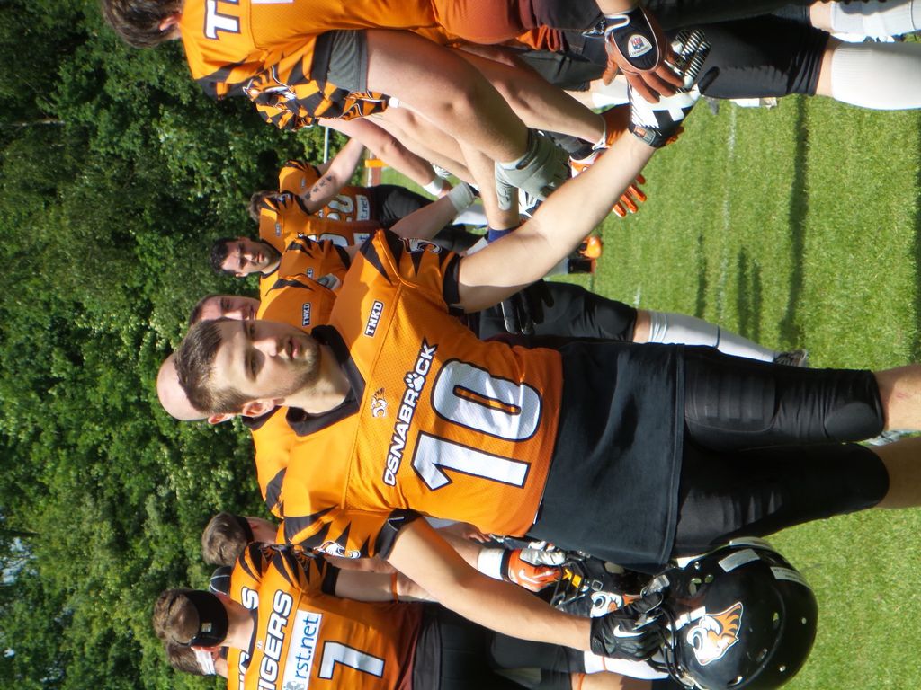 Gegen die Ritterhude Badgers verbuchten die Osnabrück Tigers einen 42:3-Erfolg (14:03//06:00//22:00//00:00). „Das nächste Mal sind den Badgers unsere Namen bekannt“, mahnte der Cheftrainer zugleich. Zum Rückspiel am 22. Juni in Osnabrück, werden die Ritterhuder Footballer die Talente im Tigers-Team noch einmal genauer beschnuppern. Sechs Angreifer vermerkten ihren Namen bereits in der Scorer-Liste. Jeder Name steht für einen Touchdown.
