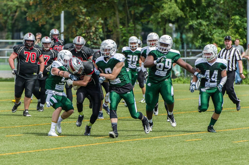 Die Voraussagen für diese Samstagspartie in der GFL Juniors standen auf Regen und angenehmen 20 Grad Celsius. Aber der Wettergott bescherte den beiden Mannschaften Sonne satt und eine unangenehme Schwüle. „Die Betreuer hatten viel damit zu tun, Wasser und Getränke bereit zu halten“, so der Unicorns-Jugendleiter Roland Ehrenfried.