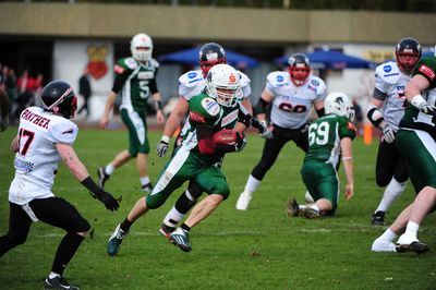 Nach der Pause gelang es den Unicorns dann bis Anfang des letzten Viertels durch zwei weitere Punkterfolge von Felix Brenner (PAT Dierolf) auf 31:14 davon zu ziehen, bevor Düsseldorf der Anschluss-Touchdown zum 21:31 gelang. Klaus Vogel (PAT Dierolf) setzte mit seinem Touchdown zum 38:21 den Schlusspunkt der Partie.