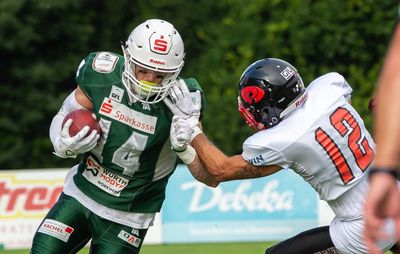 Spektakulär begann am Samstag die Partie zwischen den Unicorns und den Hurricanes. Der Jubel der 1.180 Zuschauer im OPTIMA Sportpark beim ersten Spielzug für einen fulminanten 23-Yard-Lauf von Halls John Santiago wich schon im zweiten Haller Versuch Lauten des Entsetzens. Geburtstagskind Alexander Haupert warf einen Pass, der von Saarlands Justin Jordan abgefangen wurde. Die Aufsteiger waren damit in der zweiten Spielminute in guter Feldposition in Ballbesitz und zeigten deutlich, weshalb sie in der Liga die härtesten Verfolger der Unicorns sind.