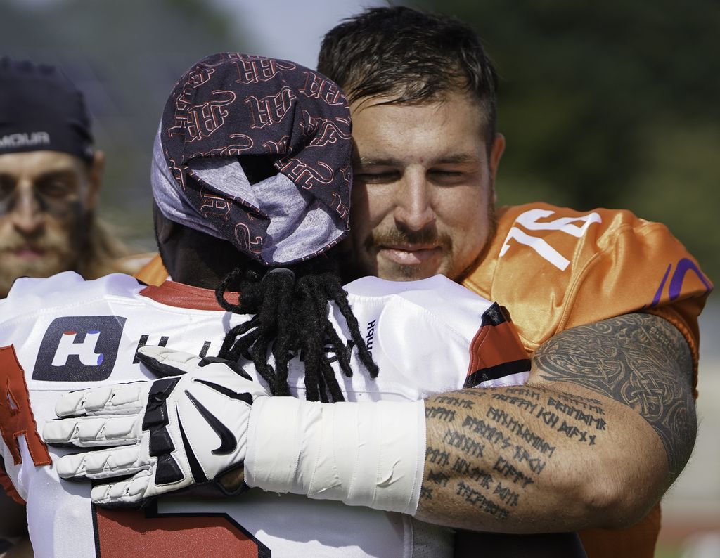Ein Wiedersehen mit ehemaligen Marburger Teamkollegen gibt es gleich für 4 Frankfurter. Cornerback Markus Krüger ist ein echter Frankfurter Bub, welcher von den Rhein Main Rockets zu den Mercenaries gewechselt war und jetzt wieder zurück in seiner Heimat in Frankfurt spielt. Universe DB Coach Tobias Ochs spielte viele Jahre in Marburg Receiver. Ein ganz besonders Spiel wird es für das Frankfurter Brüderpaar Nils und Lars Hampel geben. Beide spielten viele Jahre für Marburg, bevor Nils Hampel 2016 nach Frankfurt wechselte. Sein Bruder Lars war die letzten beiden Jahre nicht aktiv und gab jetzt dem Drängen der eigenen Kinder nach, doch noch einmal das Shoulderpad überzustreifen. Klar war dann sofort, das die Brüder diese letzte Saison gemeinsam spielen werden und es wurde lange überlegt, ob es Marburg oder Frankfurt sein sollte ?