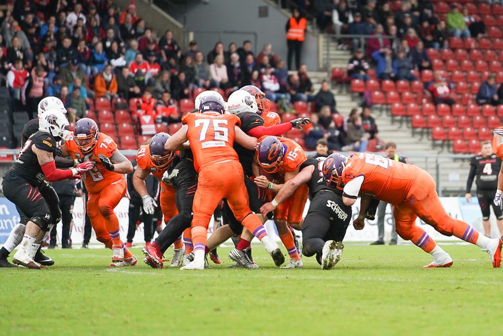 Die Gastgeber hatten mit Nicolai Bollmann (ebenfalls Gehirnerschütterung) und Samuel Kargel (Schienbeinbruch) weitere wichtige Ausfälle zu beklagen, kamen aber umso motivierter aus der Pause. So beendete Barnes mit seiner zweiten Interception den ersten Frankfurter Angriff in der zweiten Halbzeit. Mit einem 32 Yard Run gelang McClendon sein nächster Touchdown zum 22:6 (PAT Goebel). Mc Clendon erlief an diesem Nachmittag über 125 Yards und war der Garant für den Lions Sieg. Nach einer weiteren Interception von Cluley trug Lions Verteidiger Lars Steffen den Ball direkt in die Universe Endzone, 29:6 (PAT Goebel).